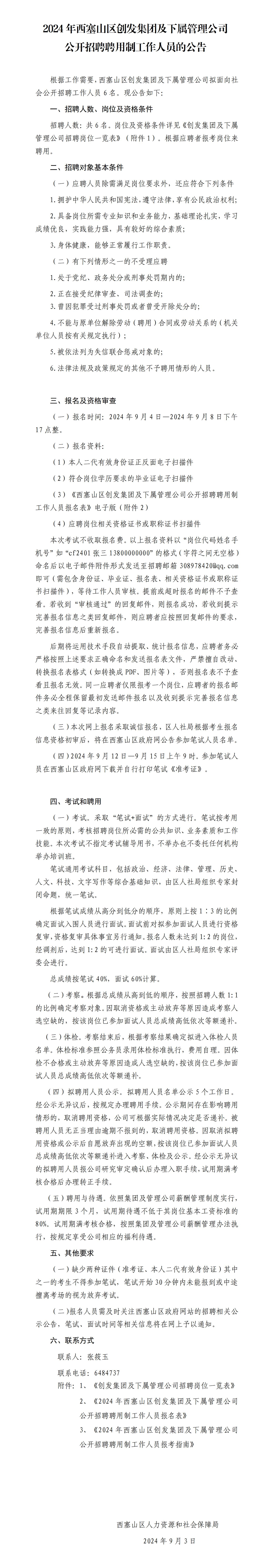 2024年西塞山区创发集团及下属管理公司公开招聘聘用制工作人员的公告