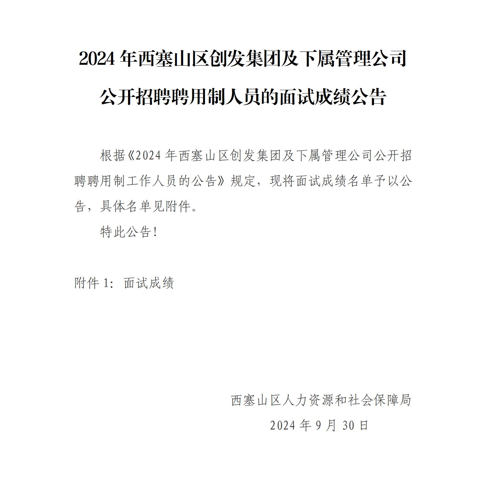 2024年西塞山区创发集团及下属管理公司公开招聘聘用制人员的面试成绩公告