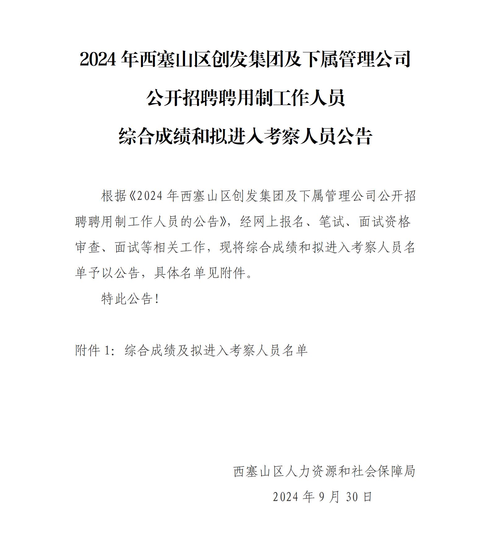 2024年西塞山区创发集团及下属管理公司公开招聘聘用制工作人员综合成绩和拟进入考察人员公告