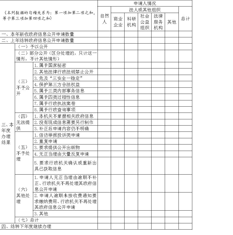 三、依申请公开情况汇总表