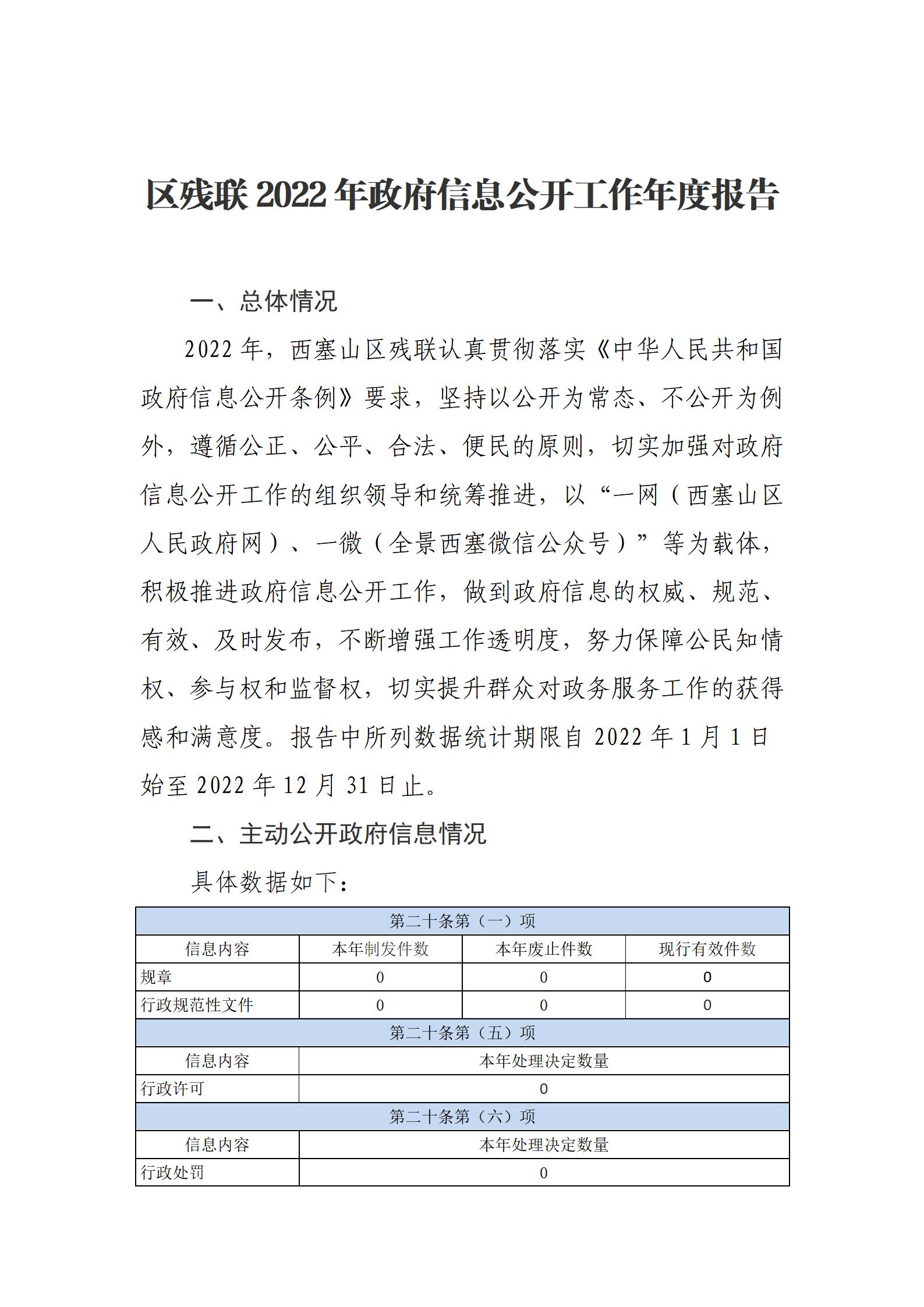 西塞山区残联2022年政府信息公开工作年度报告