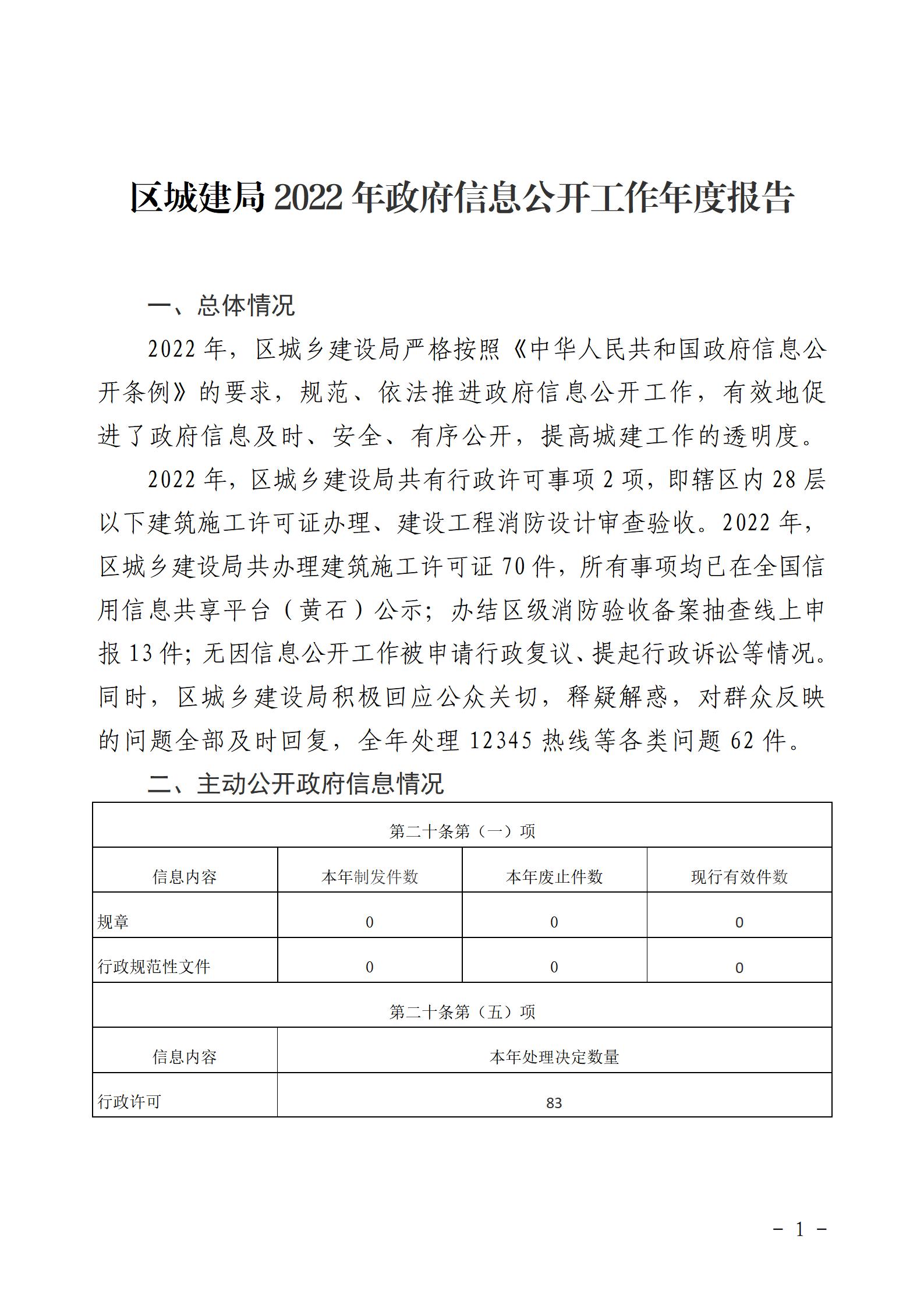 西塞山区城建局2022年政府信息公开工作年度报告.docx