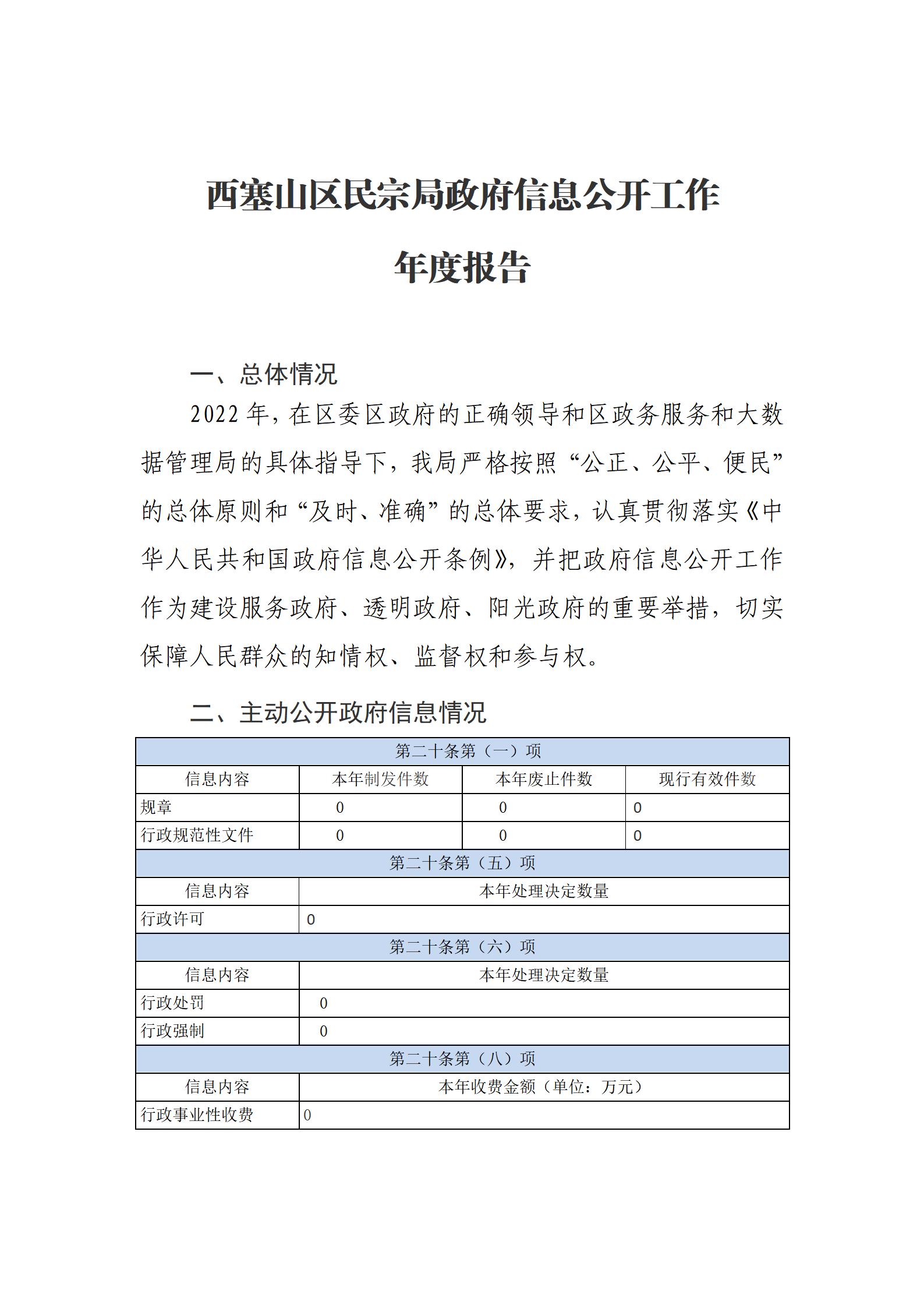 西塞山区民宗局2022年政府信息公开工作年度报告