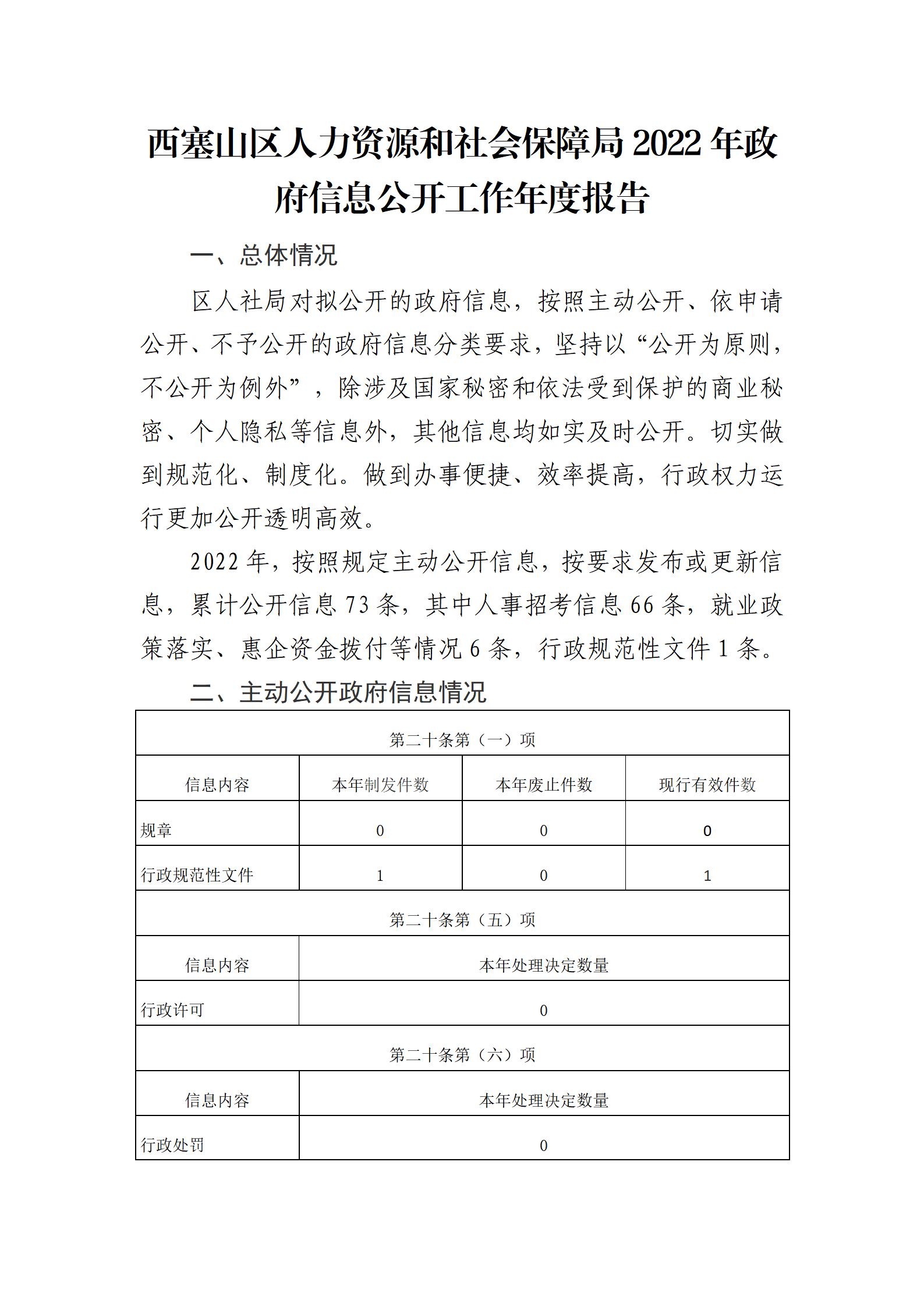 西塞山区人力资源和社会保障局2022年政府信息公开工作年度报告.docx