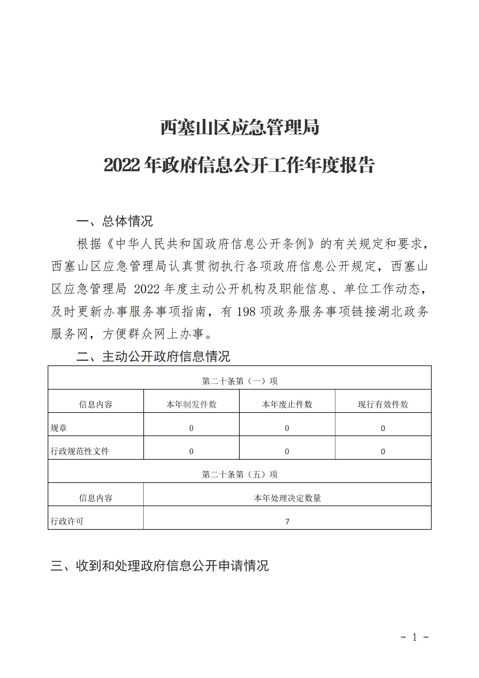 西塞山区应急管理局2022年政府信息公开工作年度报告