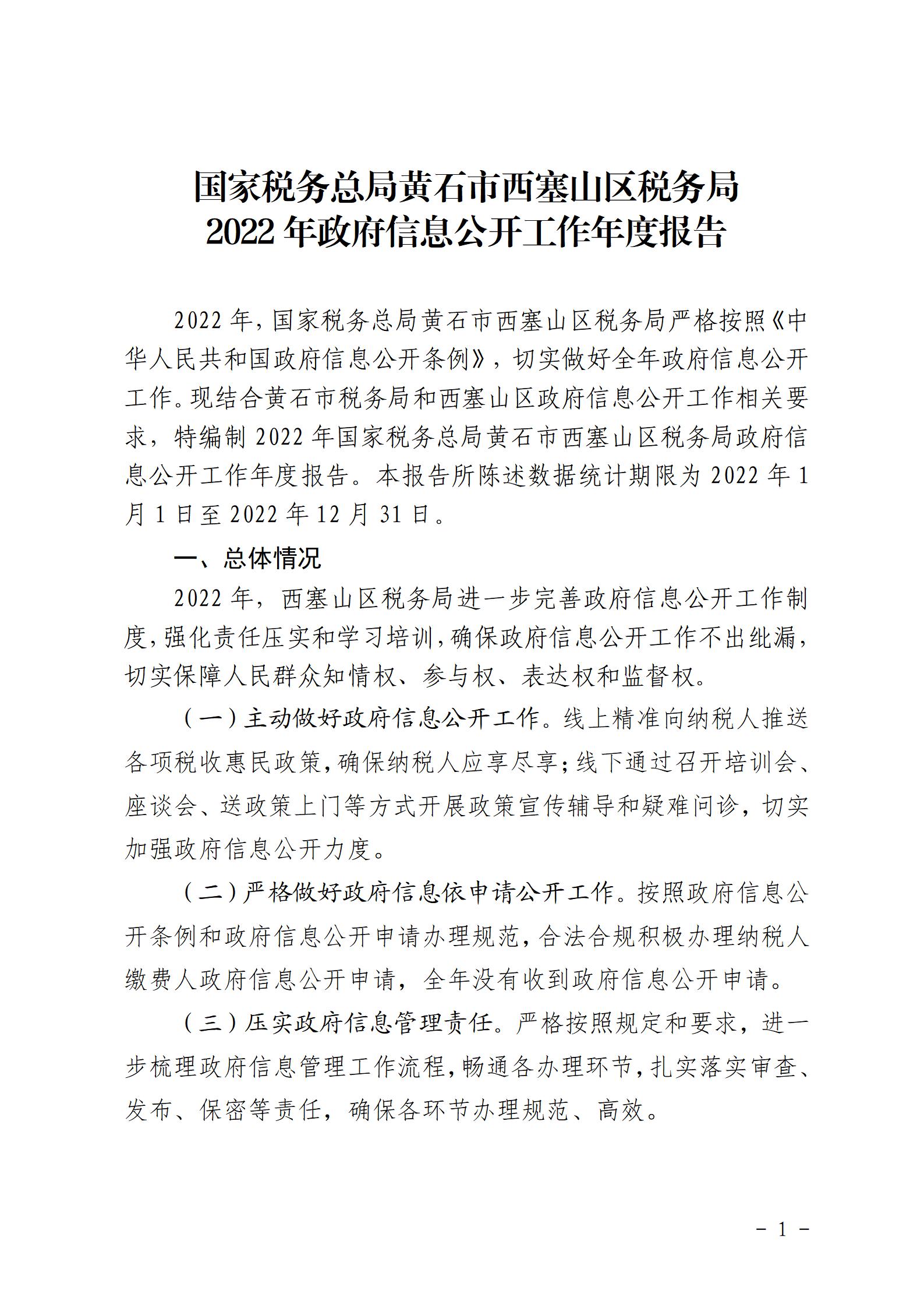 国家税务总局黄石市西塞山区税务局2022年政府信息公开工作年度报告.doc