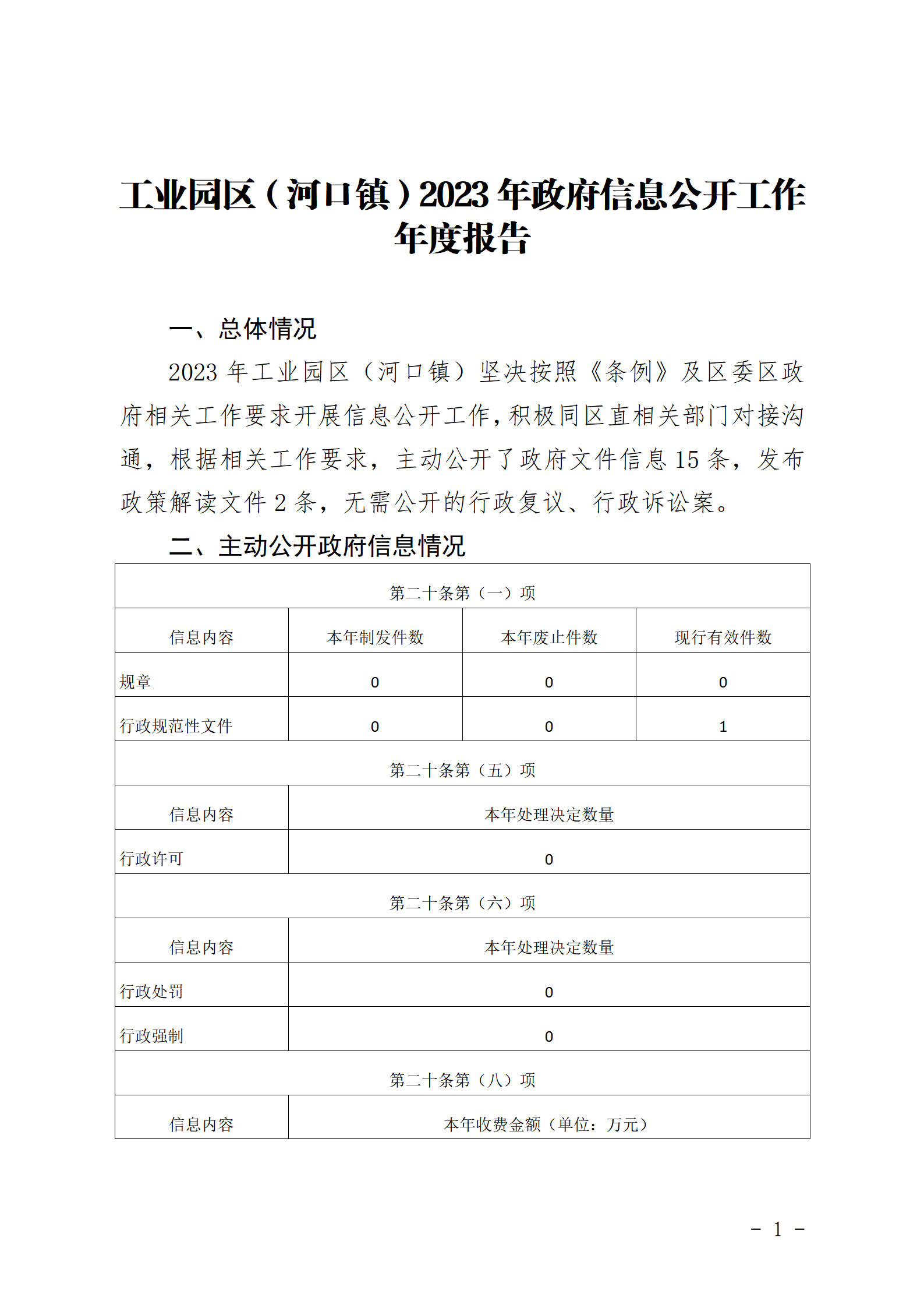 工业园区(河口镇)2023年政府信息公开工作年度报告.docx