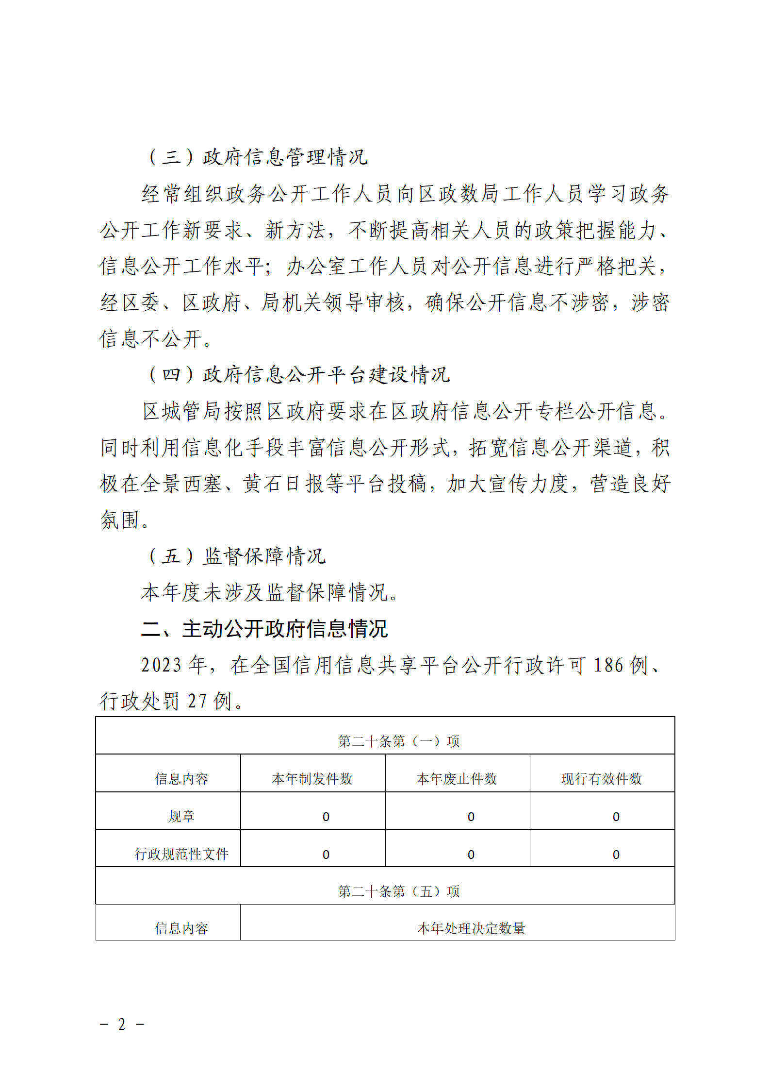 西塞山区城市管理执法局2023年政府信息公开工作年度报告