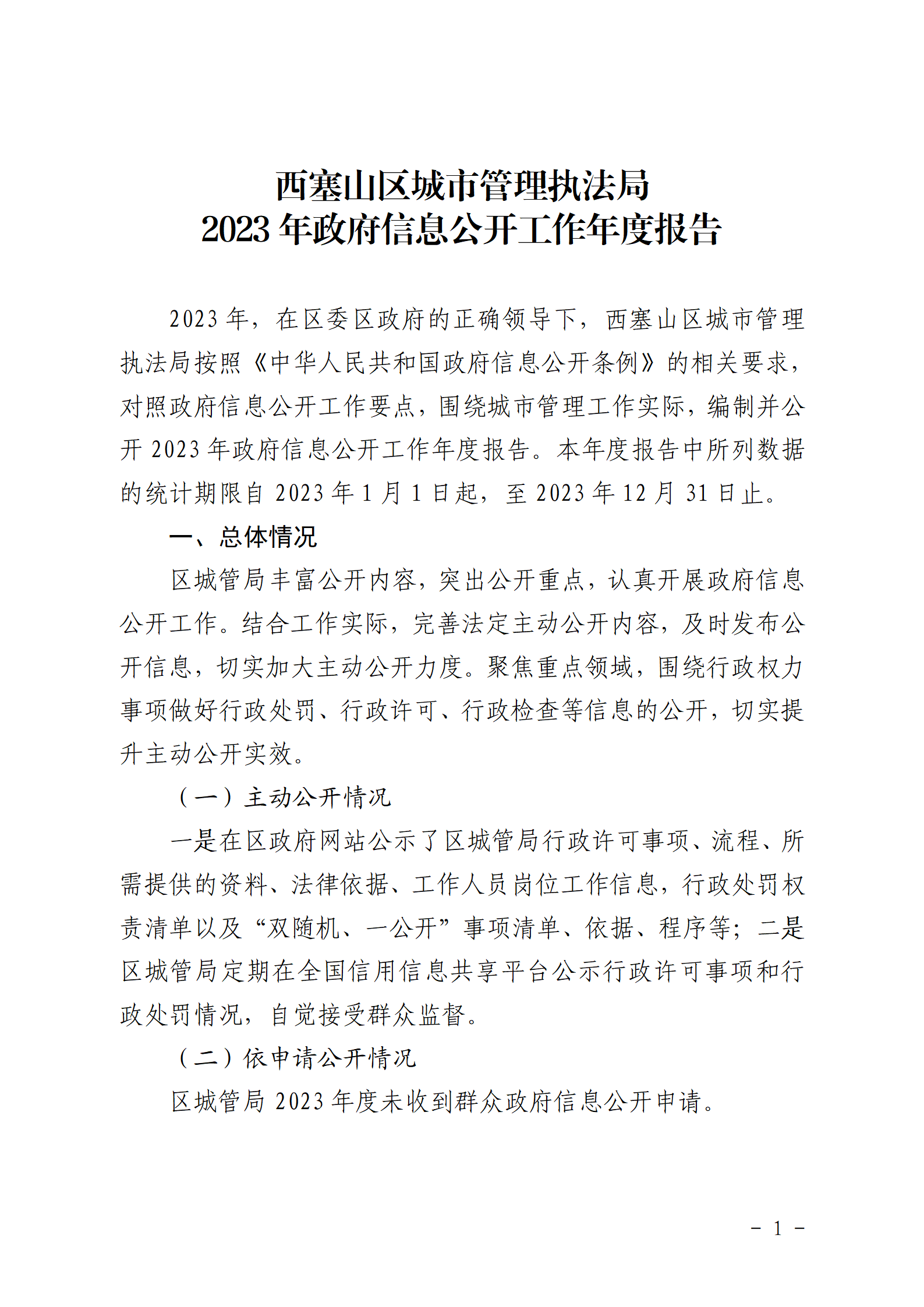 西塞山区城市管理执法局2023年政府信息公开工作年度报告.docx