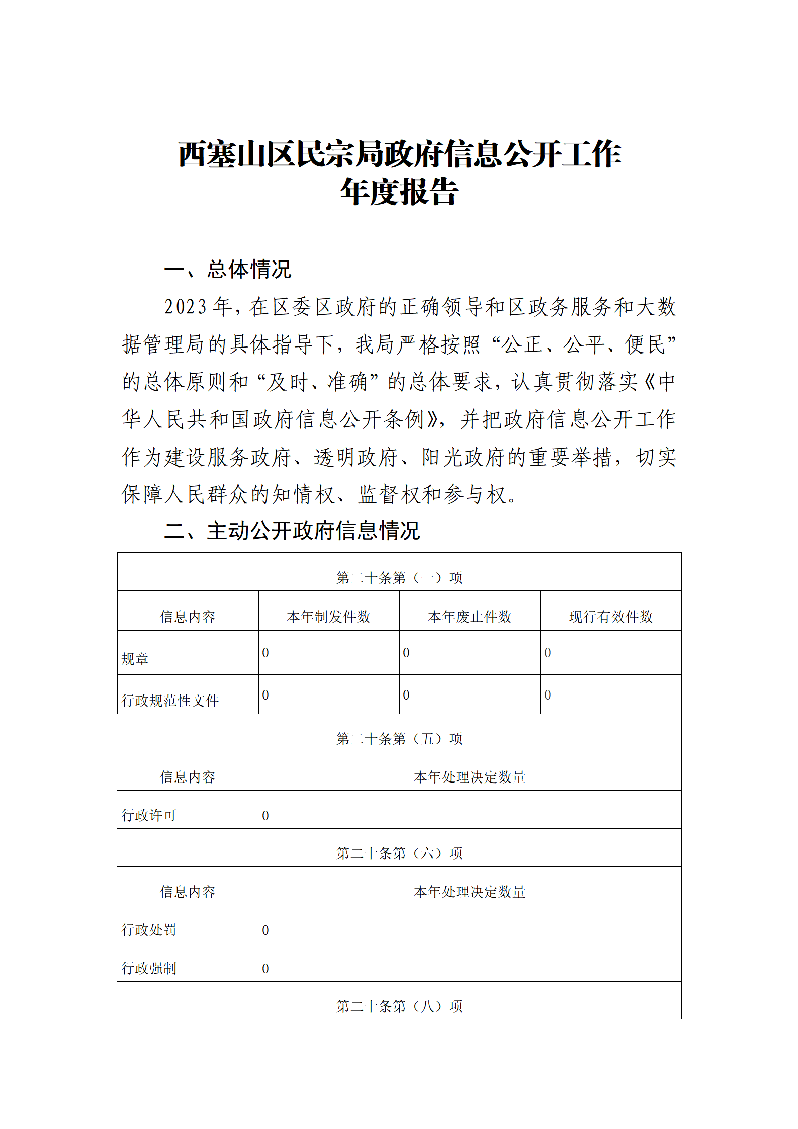 西塞山区民宗局2023年政府信息公开工作年度报告