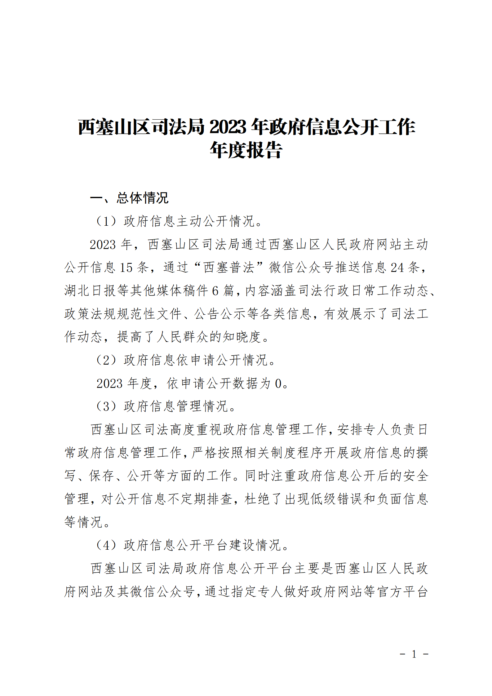 西塞山区司法局2023年政府信息公开工作年度报告