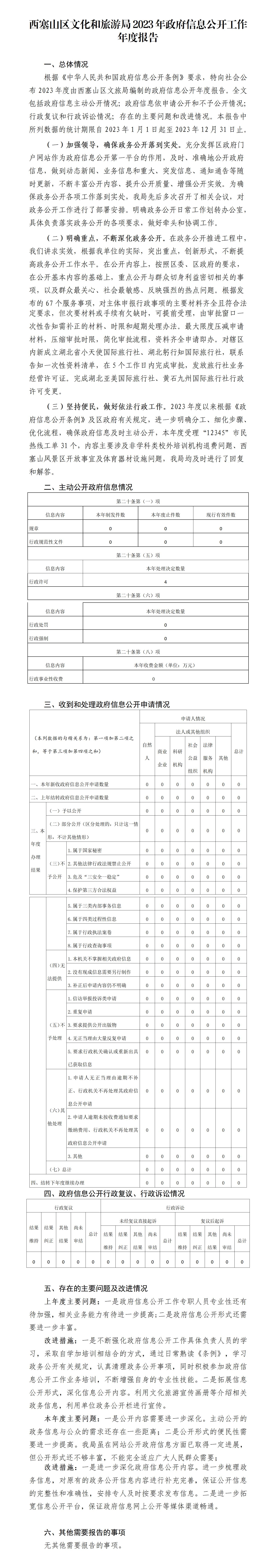 西塞山区文化和旅游局2023年政府信息公开工作年度报告
