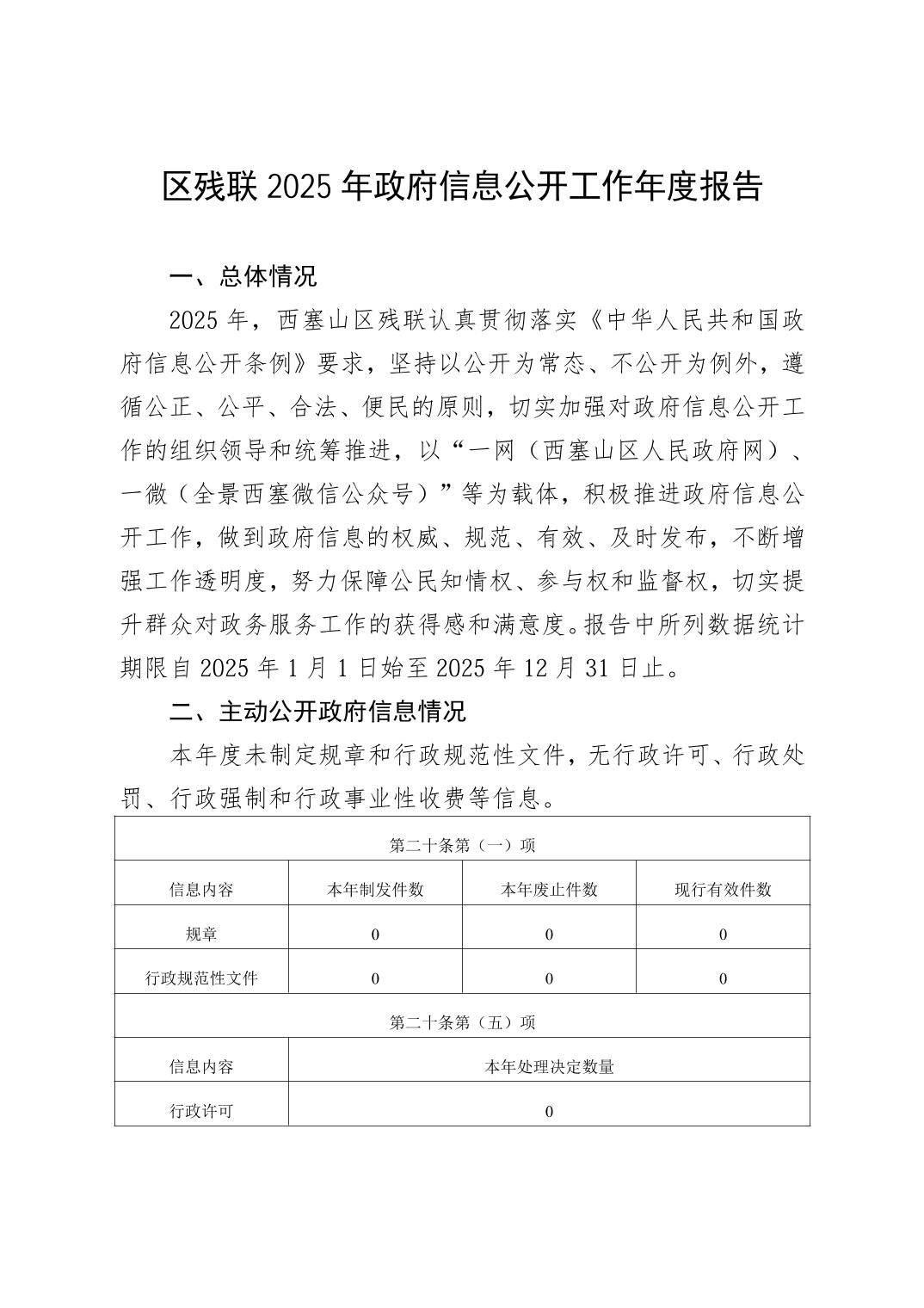 西塞山区残联2025年政府信息公开工作年度报告
