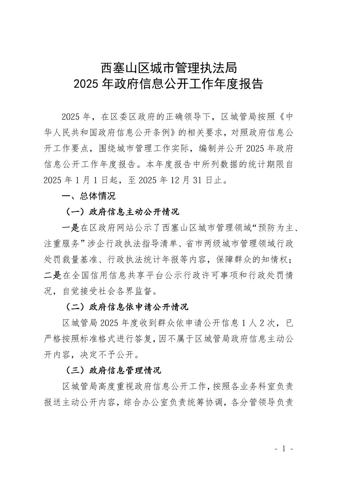 西塞山区城市管理执法局2025年政府信息公开工作年度报告(区城管局).pdf