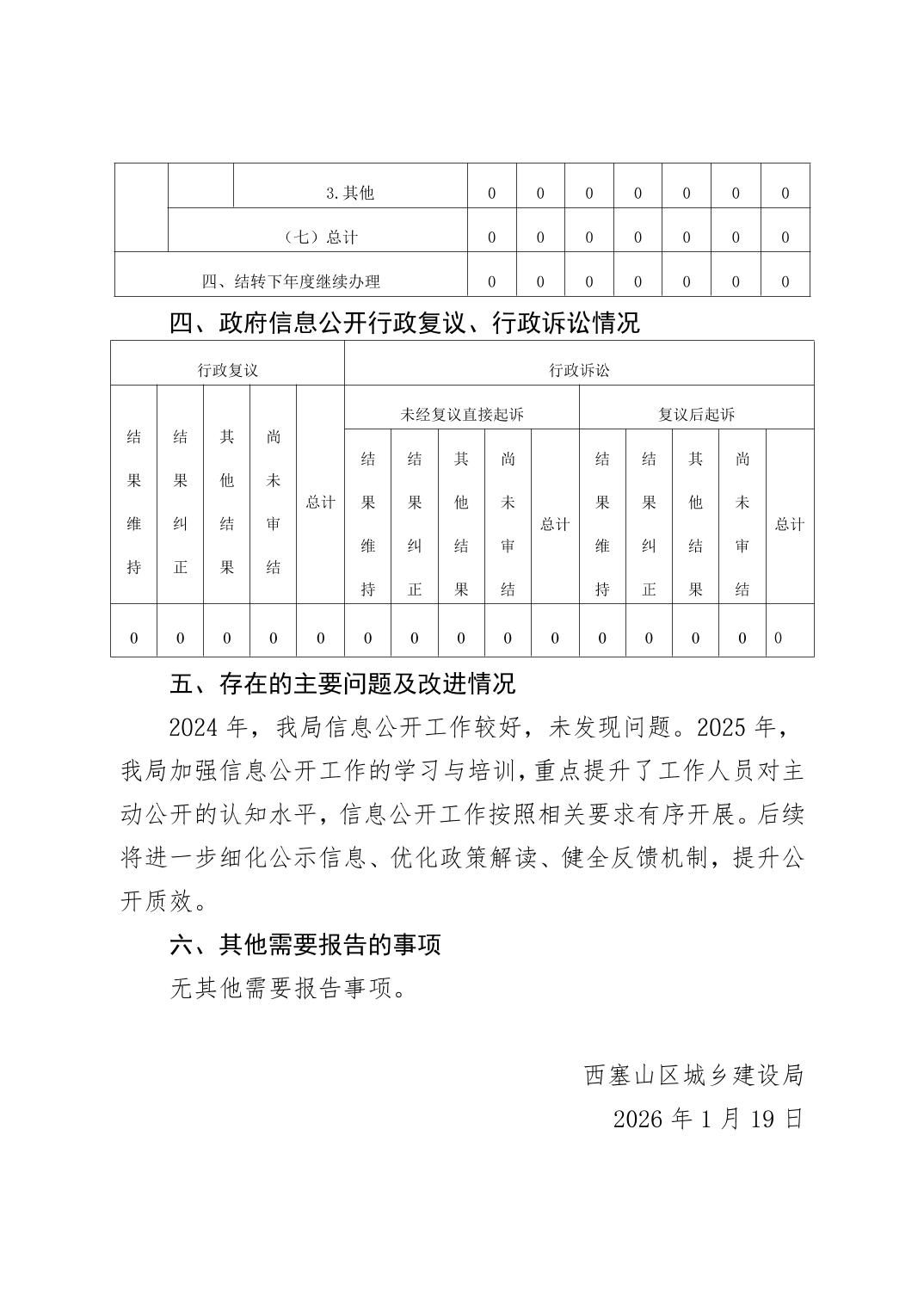 西塞山区城乡建设局2025年政府信息公开工作年度报告