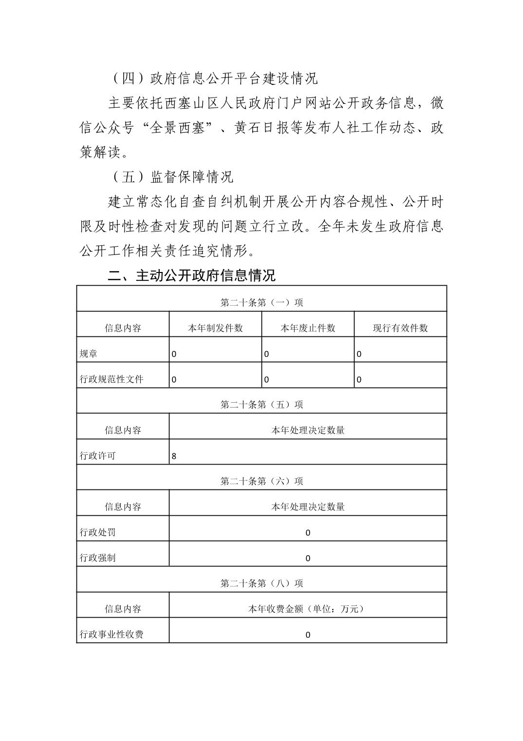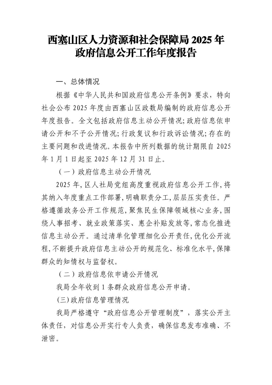 西塞山区人力资源和社会保障局2025年政府信息公开工作年度报告