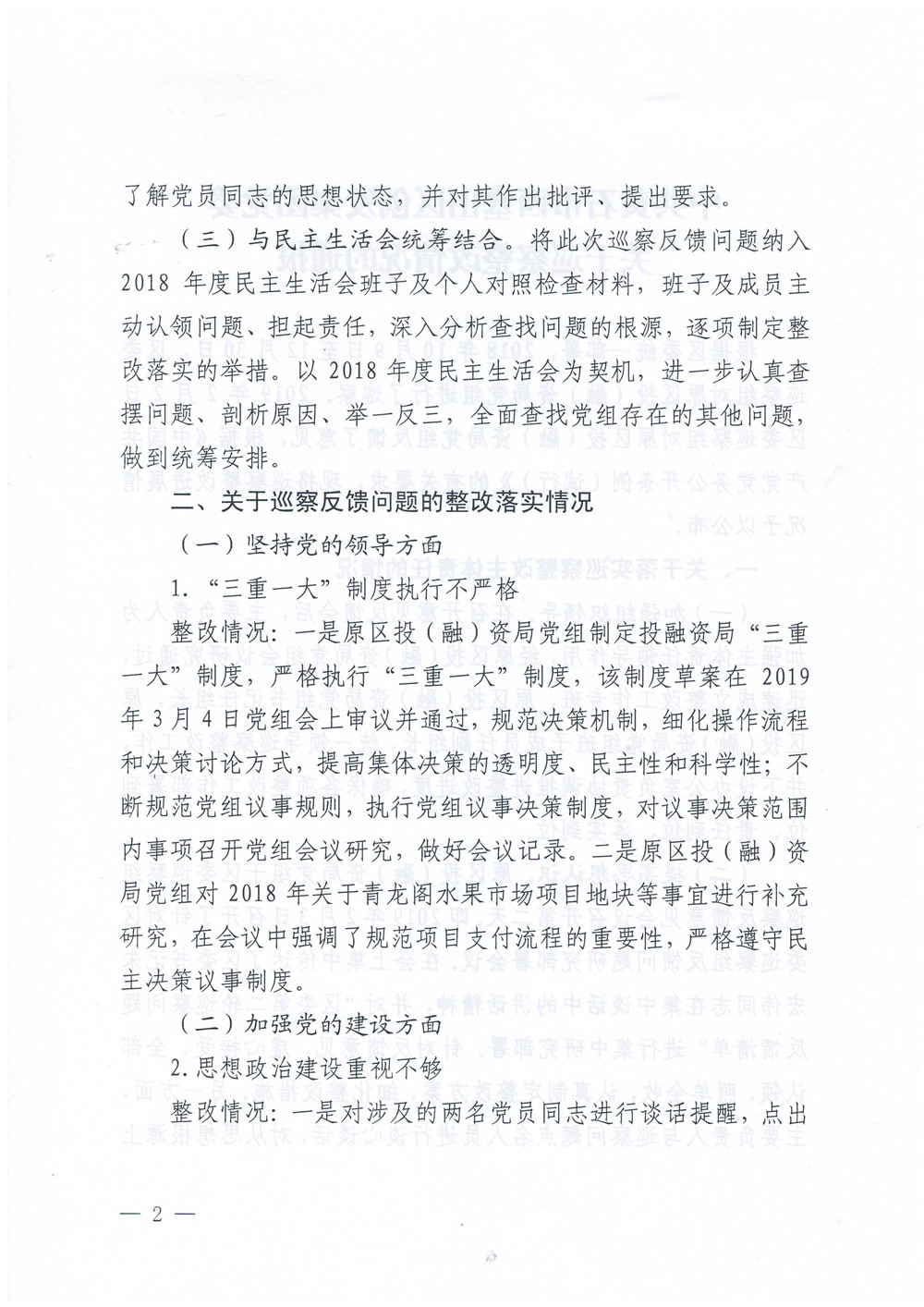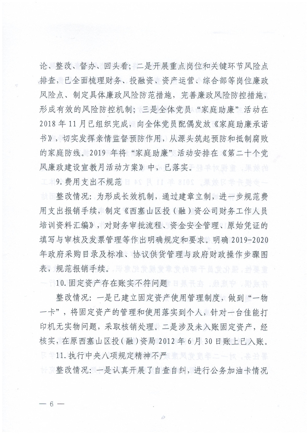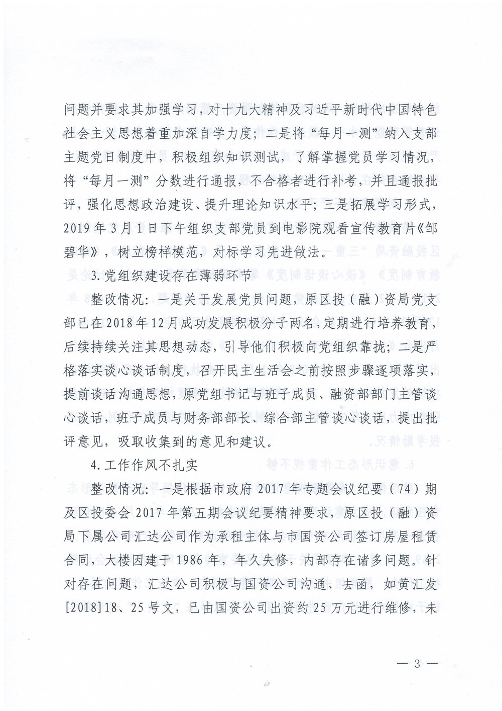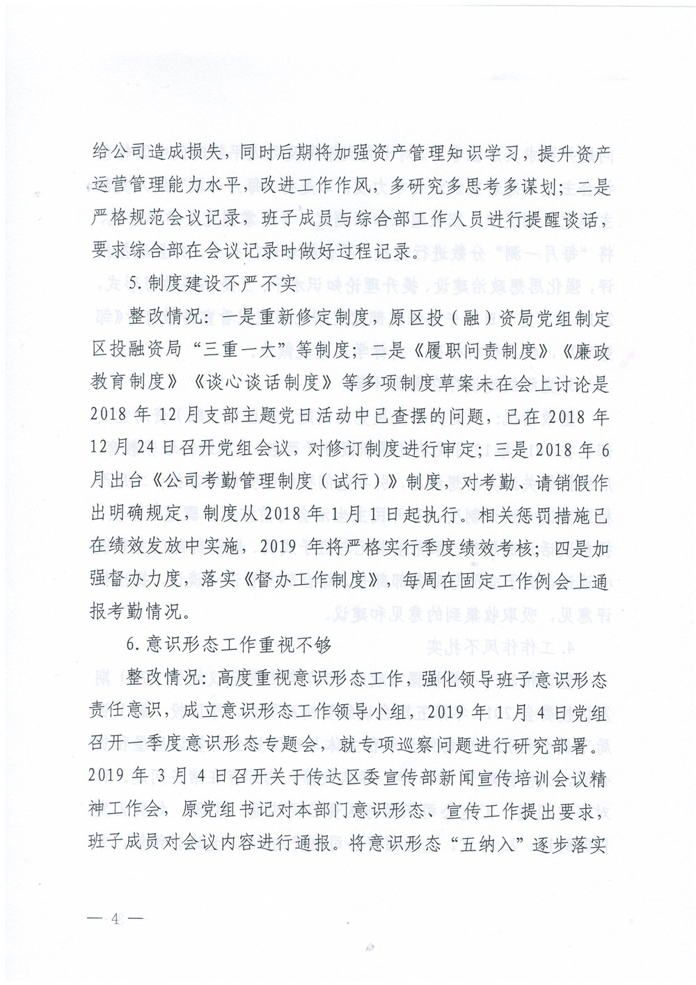 中共黄石市西塞山区创发集团党委关于巡察整改情况的通报