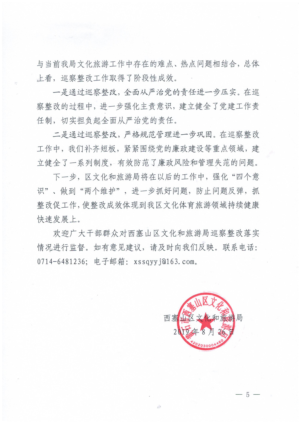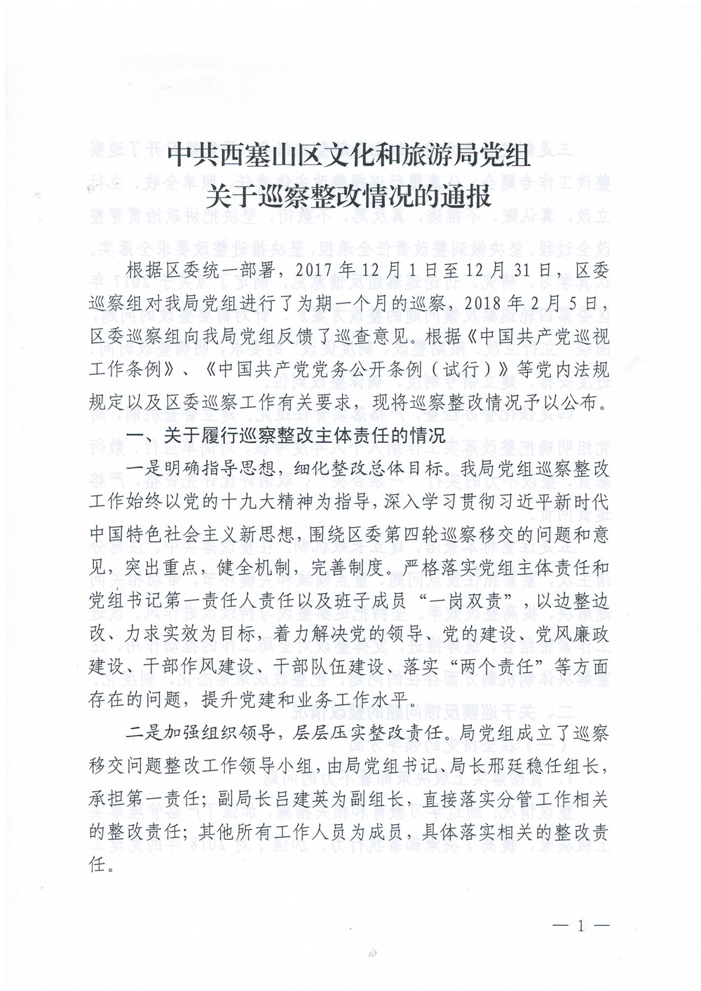 中共西塞山区文化和旅游局党组关于巡察整改情况的通报