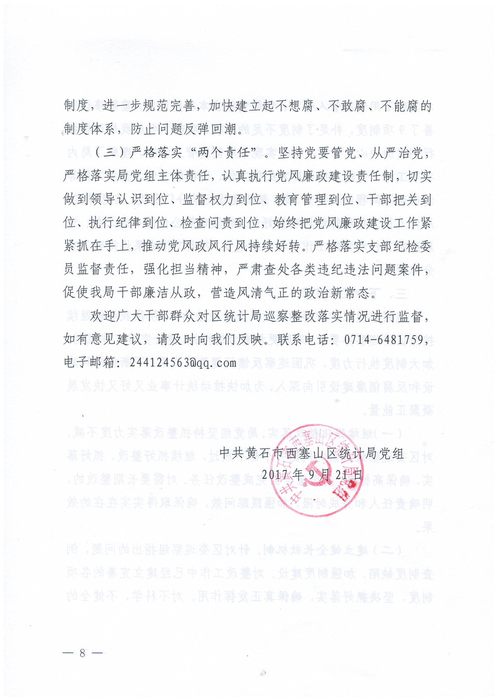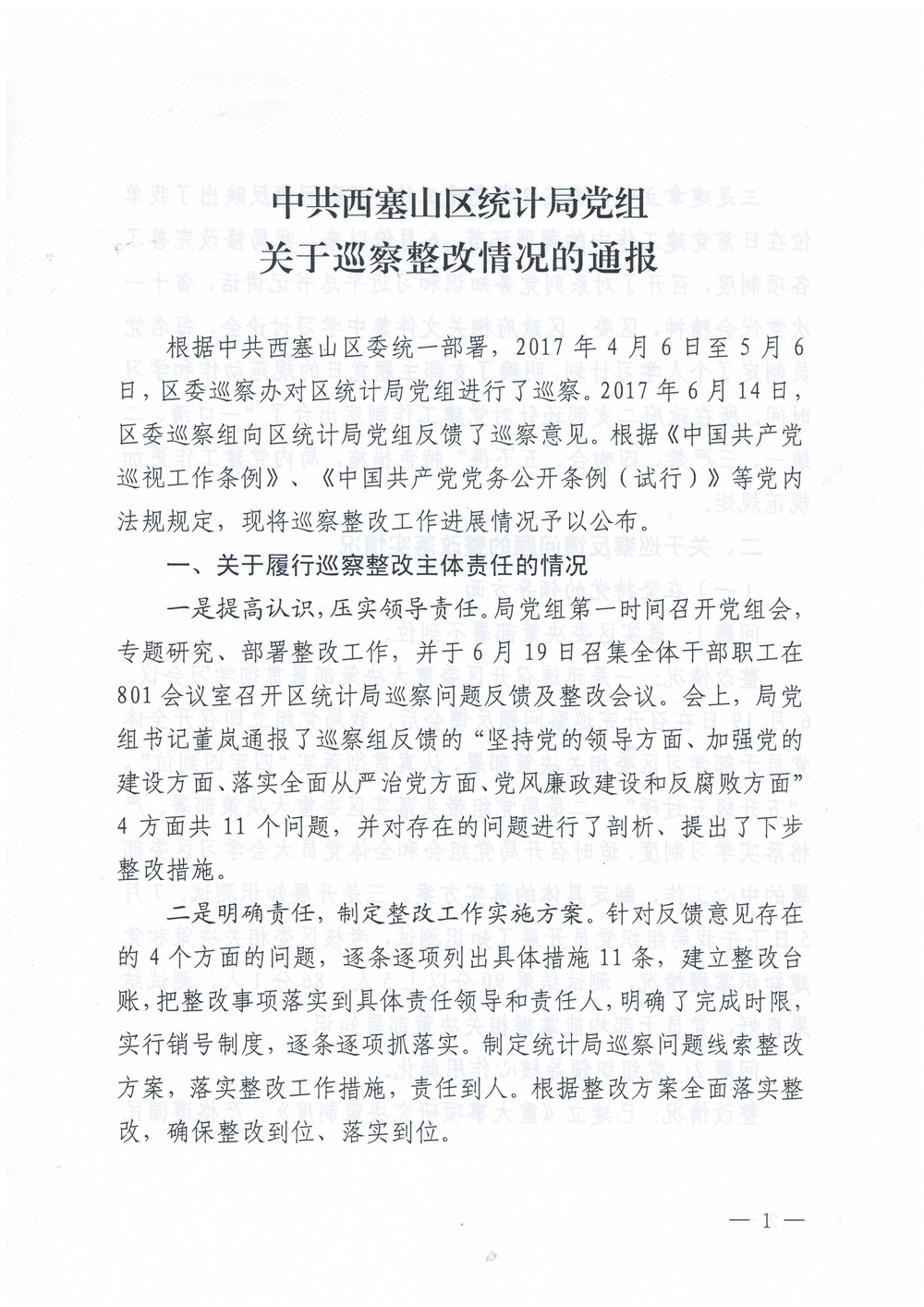 中共西塞山区统计局党组关于巡察整改情况的通报
