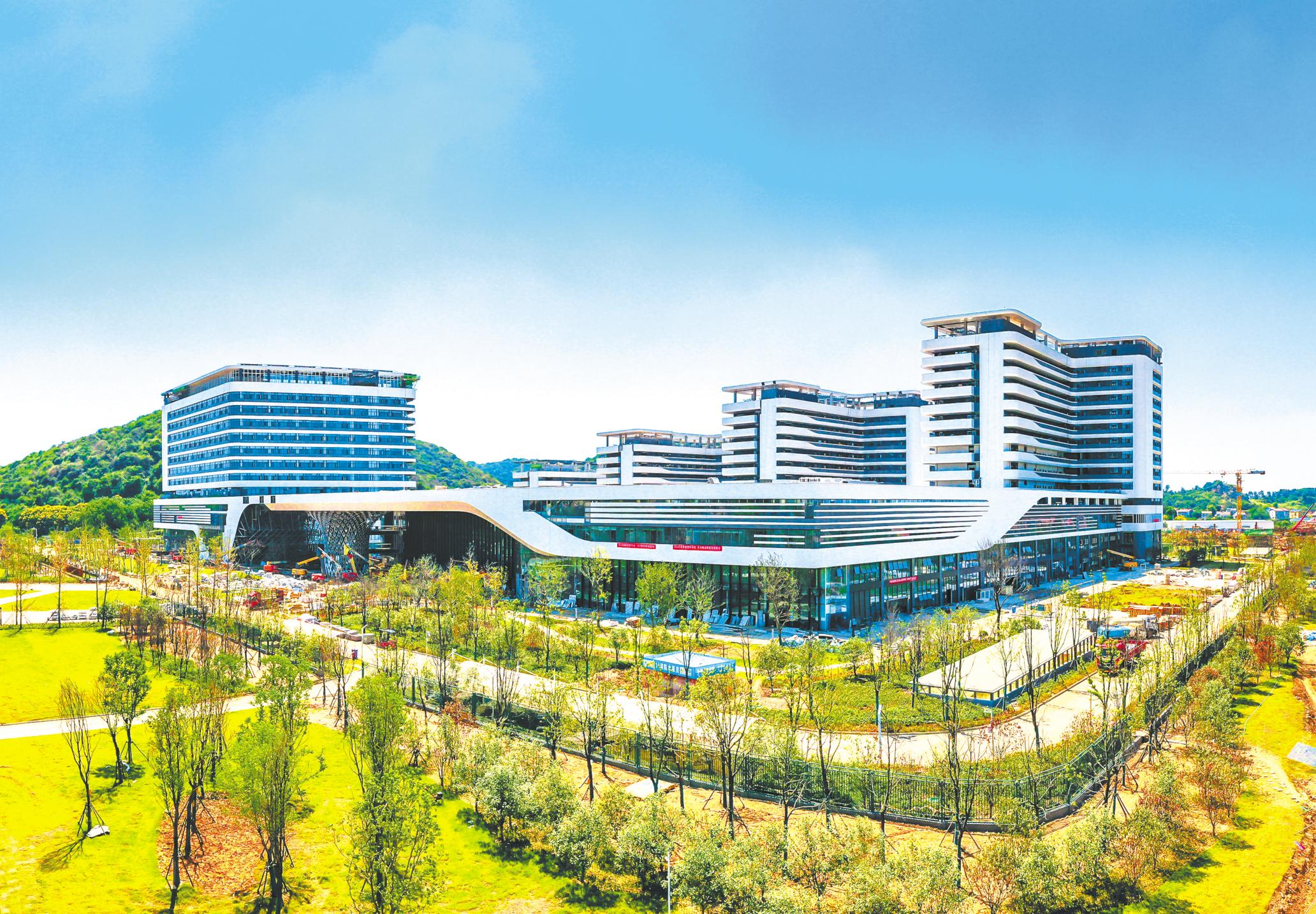 武汉规模最大的平战结合医院——江夏云景山医院,总建筑面积25.2万平方米,设计床位1000张;平时作为康养医院运行,发生重大突发公共卫生事件时,可迅速改建为传染病医院。(湖北日报全媒记者 柯皓 摄)