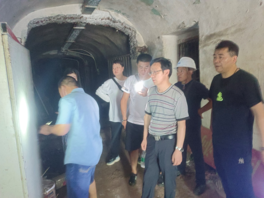 区城建局和市人防办管理人员对中窑防空洞实地查勘
