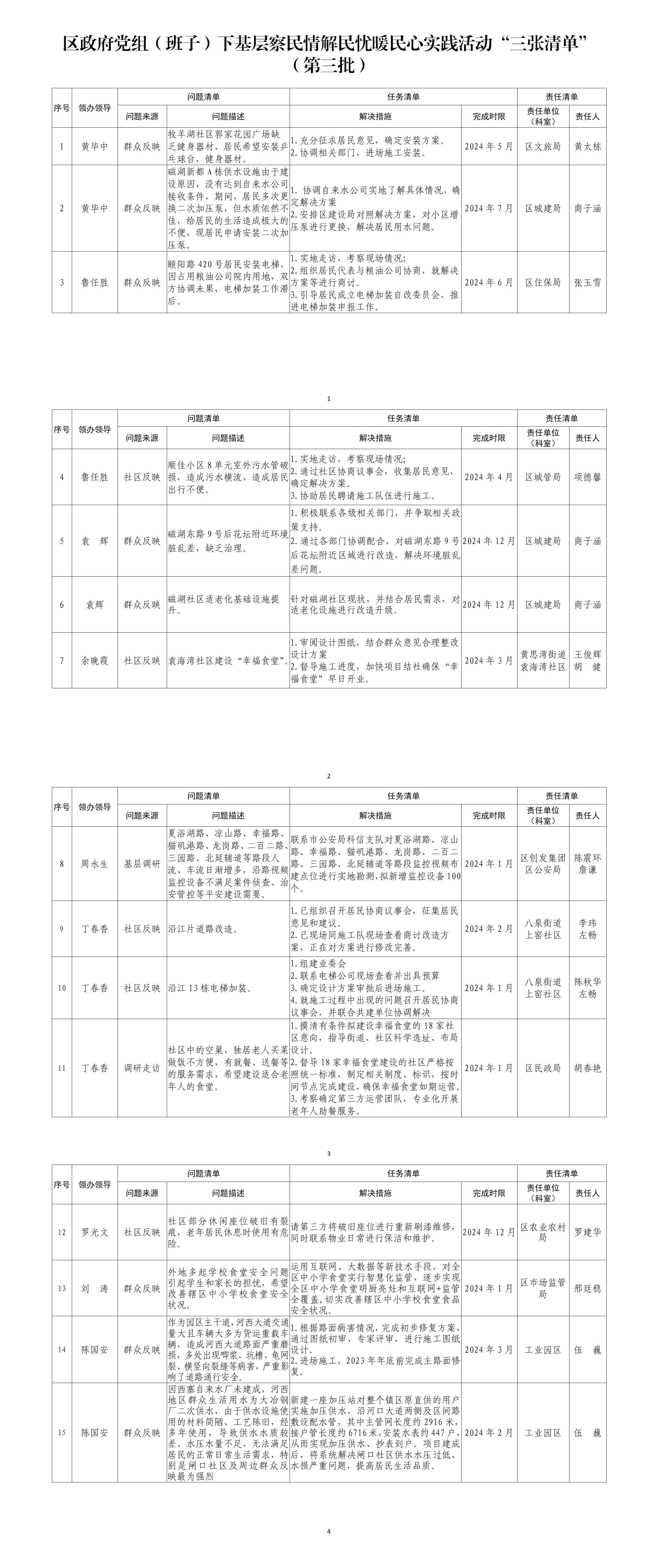区政府党组(班子)下基层察民情解民忧暖民心实践活动“三张清单” (第三批)