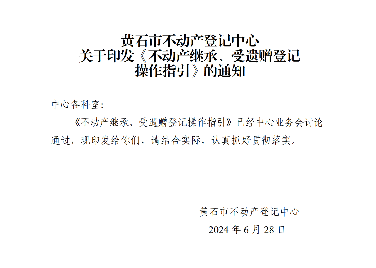 黄石市不动产登记中心 关于印发《不动产继承、受遗赠登记操作指引》的通知