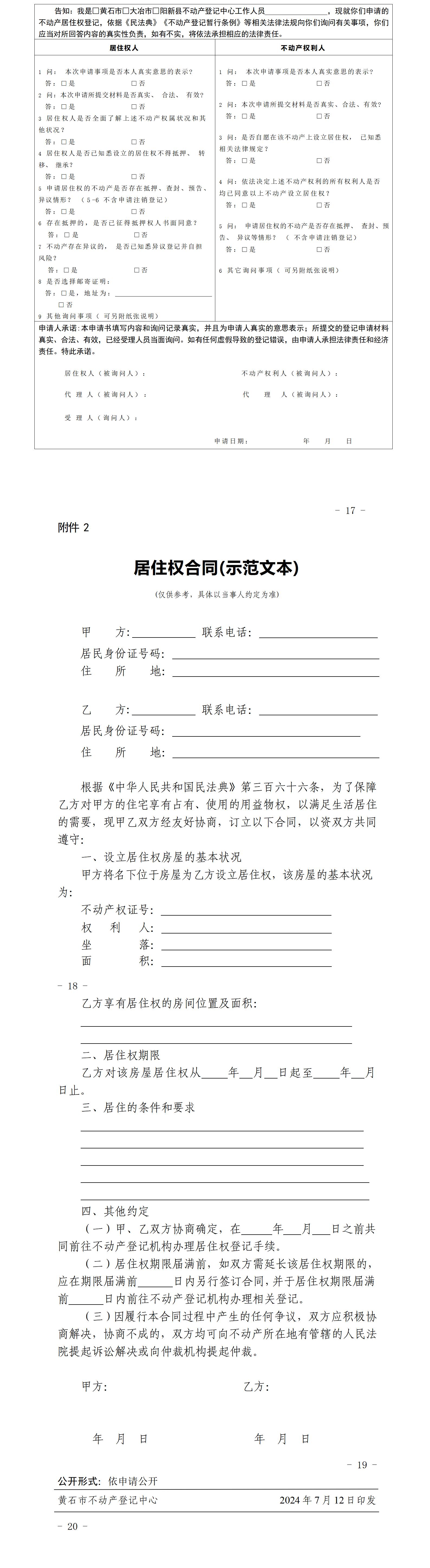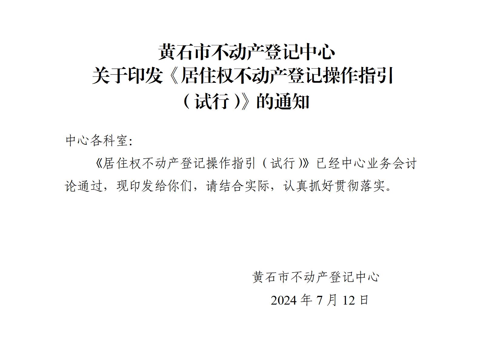 黄石市不动产登记中心 关于印发《居住权不动产登记操作指引 (试行)》的通知