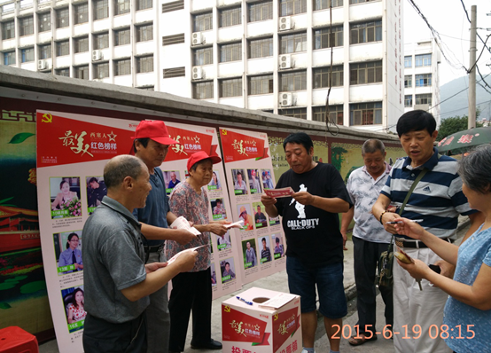 为深入推进群众路线教育实践活动和精神文明创建工作的开展,热情讴歌西塞山区各条战线,特别是基层党员中涌现出来的先进,西塞山区开展第二届“最美西塞人”推荐活动,临江社区是流动投票点,志愿者们每天在投票点宣传最美西塞人的平凡事迹,动员群众积极参与投票。