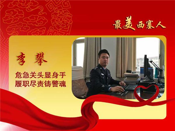 李攀,男,31岁,中共党员,现任市公安局西塞山分局经济犯罪侦查大队民警。该同志以立警为公、执法为民为宗旨,工作作风扎实,具有奉献精神,能力和业绩突出。先后多次受到市局嘉奖,2014荣立个人三等功1次,2016年被评为优秀公务员。