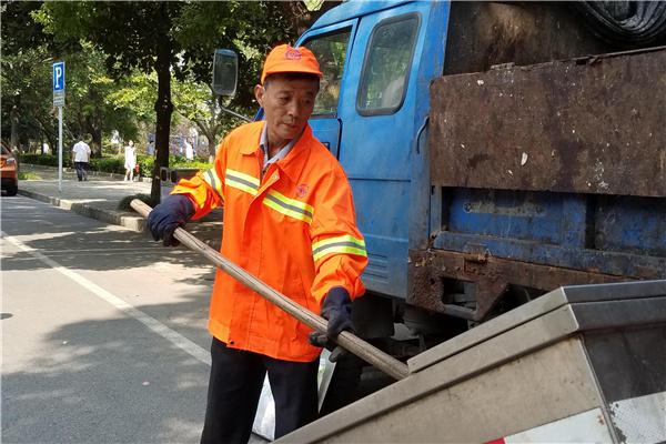 周勇在工作上兢兢业业,任劳任怨。垃圾收集是一项苦、脏、累的工作,特别是夏冬两季。夏天水果冷饮上市,使垃圾量比平时增加近一倍,各种垃圾随处倾倒,难闻的恶臭,产生腐蚀快,为了使垃圾日产日清,只能忍着加班加点的工作;寒冬季节,垃圾常常冻在垃圾箱内倾卸不下来,就只能用铁锹先把垃圾弄得松动,随着铁锹的飞舞,松动的垃圾全迸得满头满脸,尽管冰天雪地,可干完活,就是一身汗,一天班下来累的筋疲力尽。2016年是创卫年,为了提区清扫保洁质量,确保达到国家、省质量标准,他凌晨三点就上路收集垃圾,始终坚守在创卫工作的第一线。一次,公安路垃圾中转站油管破裂,积存了大量垃圾,远远就有一股恶臭味,他带人赶到现场,第一个挥锹走过去,一下下地铲起垃圾,那天,从中午12点一直干到晚上8点多,终于清除干净。