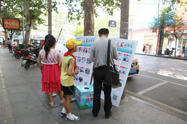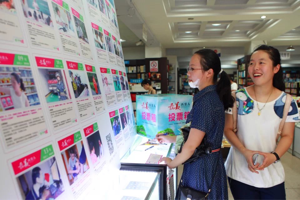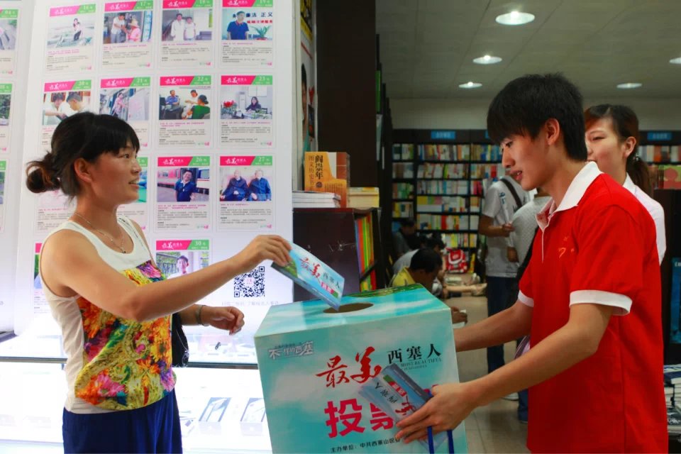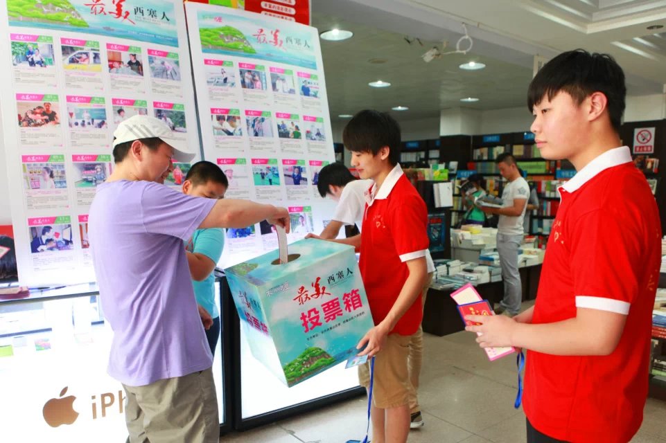 他们走上街头、走进书店,当起了“最美西塞人”评选活动的义务宣传员,向过往的市民介绍“最美西塞人”评选活动,激发了广大市民积极参与“最美西塞人”评选活动的热情,许多市民驻足观看30名候选人的典型事迹,并踊跃参与投票,为自己心目中的“最美西塞人”投上了宝贵的一票。 (文 刘庆元 /图 黄成 刘庆元 摄)