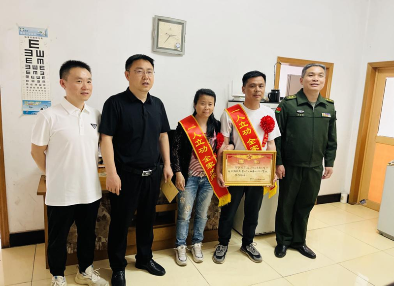 “恭喜!您孩子在部队荣立三等功,这是你们全家的光荣,也是西塞山区的光荣,感谢你们为国家培养出了一名优秀的军人。”