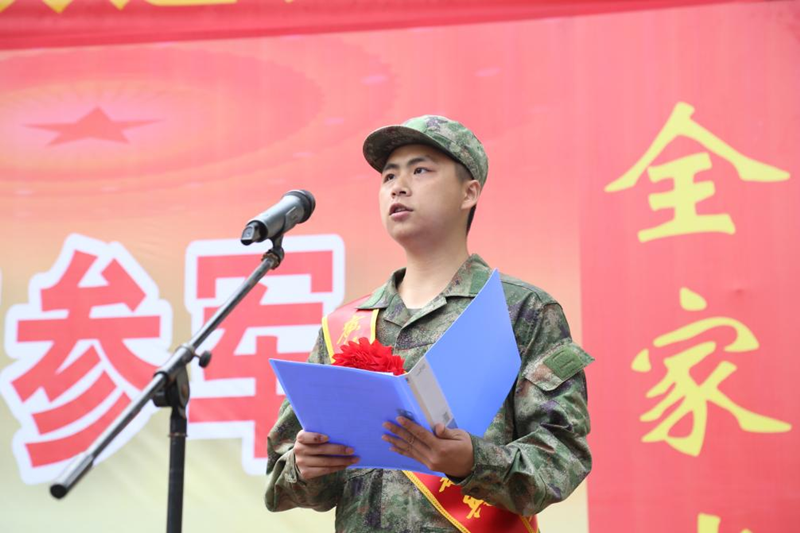 “昔日挥墨抒文采,今朝操戈卫祖国!”新兵李响代表全体战友发言,全体新兵庄严地进行了入伍宣誓,大家纷纷表示:“一定会刻苦训练、顽强拼搏,让自己尽快成为一名合格的战士,为祖国和平昌盛,为人民幸福安康,扛好枪、站好岗,努力取得优异成绩,为家乡争光,为‘八一’军旗添彩。”