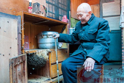 年复一年,平静如水。直到去年,李树林的老年生活,才起了点波澜。当年6月,他看到里屋不时会有蜜蜂从窗户飞到柜子里,打开柜子就震惊了——蜂巢已经筑起,占了柜子的三分之一。