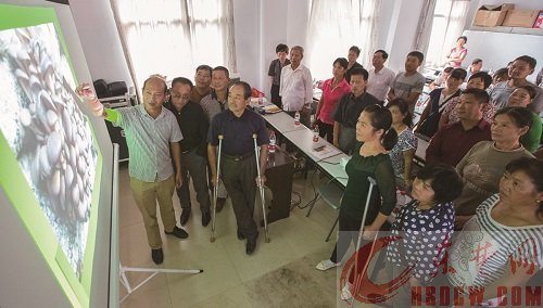 昨日,在西塞山滨江新区管委会,农业专家正在向附近村庄的60名残疾人讲解食用菌的栽培方法。据了解,西塞山区残联为帮助辖区内残疾人自主创业,请来市科技局农技专家免费为他们进行为期4天的食用菌栽培及加工的创业培训,对有意向创业的当地村民进行长期的技术支持。