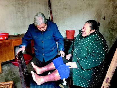 2015年夏天,王兰菊的双腿又患上湿疹,刘春莲老人每天在家帮儿媳王兰菊清洗、擦药……王兰菊体重有80多公斤,翻身、按摩都不是一件容易的事,对于一个年过九旬的老人来说,是件多么困难的事!