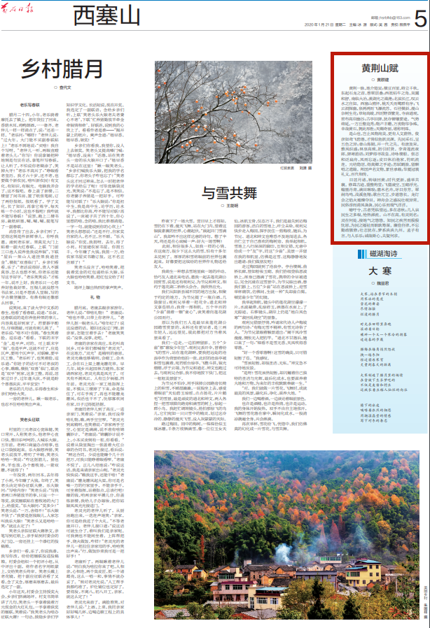 黄荆一脉,地介楚吴;横亘百里,峙立千秋。东起石龙之首,葱翠层叠;西抵牯牛之角,岚霭和舒。南临大冶,羡湖光之潋滟;北滨长江,叹云水之自如。西塞山骋怀,桃夭夭而鹭群有序;飞云洞探幽,泉洌洌而飞瀑流苏。石径横斜,漫山杂树生花;草甸高峻,四时野莽繁芜。寺庙道观,密布高岸幽谷;古亭旧驿,犹存僻壤要途。气势绵延,一方丘壑竞秀;物产丰赡,万类物华争殊。幸哉黄石,拥此形胜;天赐奇丽,堪称明珠。