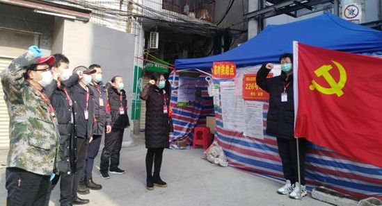 一个党员一面旗,百名党员进社区。防疫战斗打响后,大智路社区果断行动,把下沉到社区的“双报到”党员干部、社区工作者、志愿者等各方力量凝聚起来,成立社区临时联合党委,下设16个党支部,形成群防群治合力。