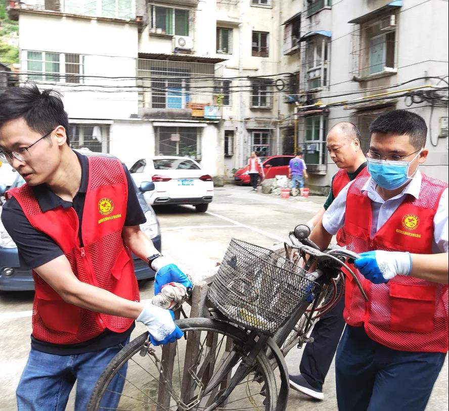 在太子山庄内,楼梯间陈年蜘蛛网较多,堆放各种生活垃圾,无序存放各种车辆,安全隐患较大。晏勇与区委办干部深入楼栋,认真仔细清扫蜘蛛网和各种生活垃圾,将楼道入口处的自行车、摩托车、废弃装修材料搬运一空,让院内环境卫生面貌焕然一新。