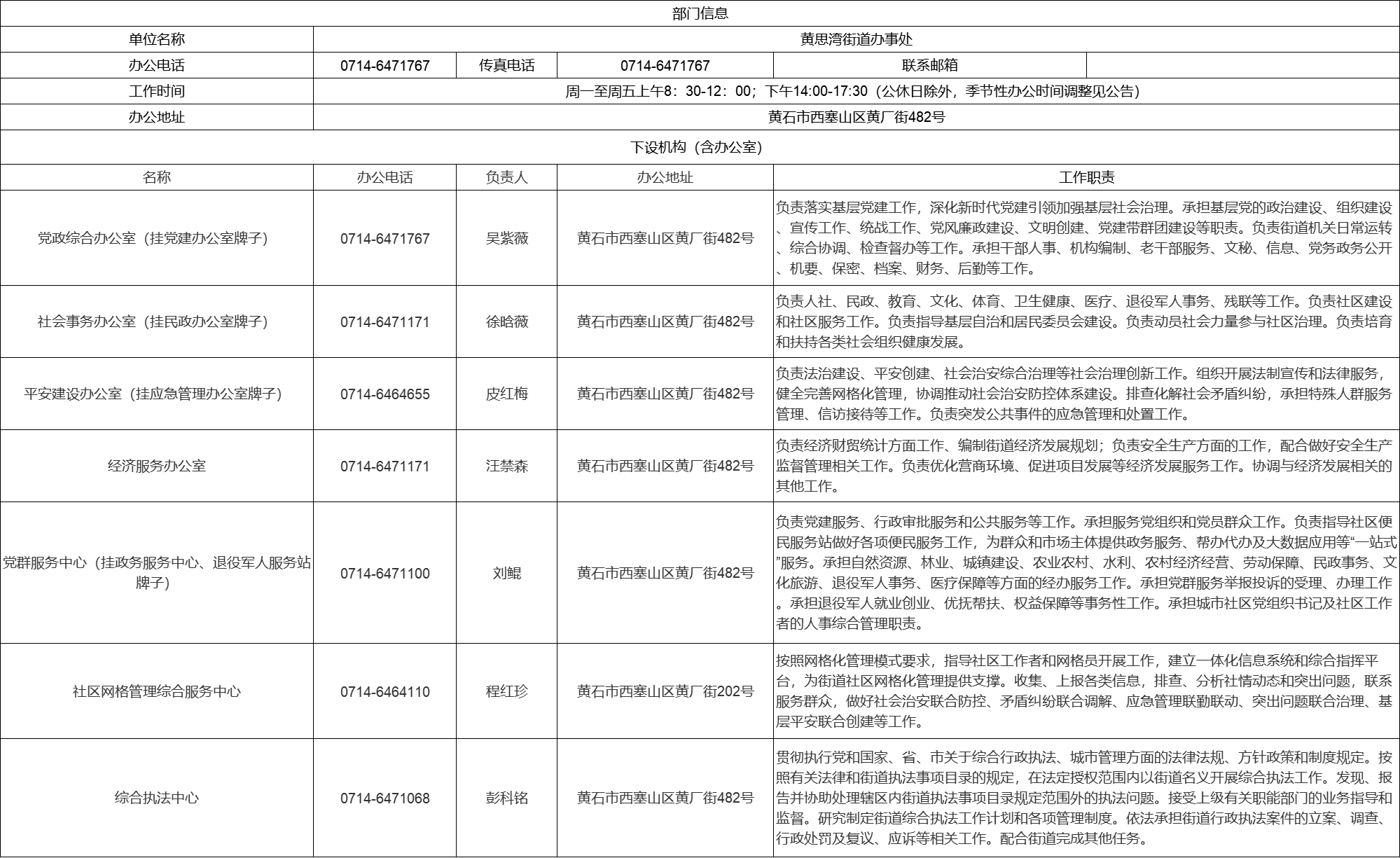 西塞山区黄思湾街道机构设置情况