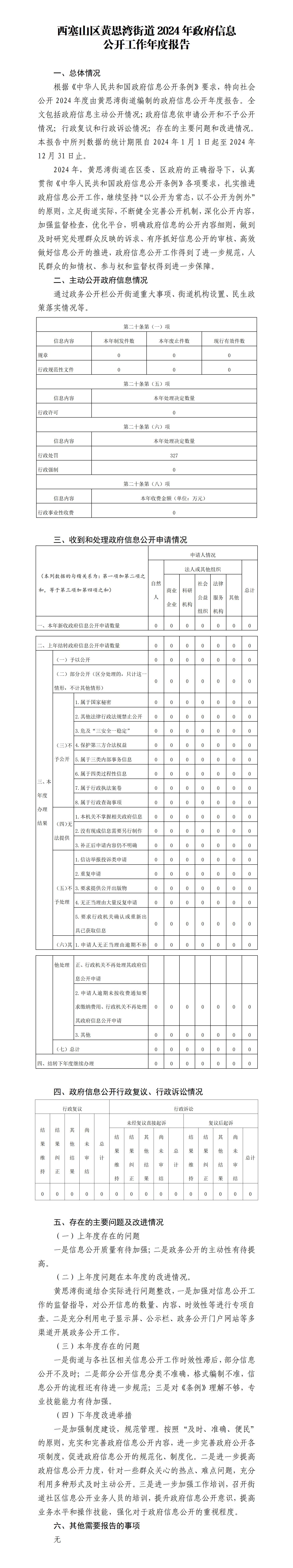 西塞山区黄思湾街道2024年政府信息公开工作年度报告