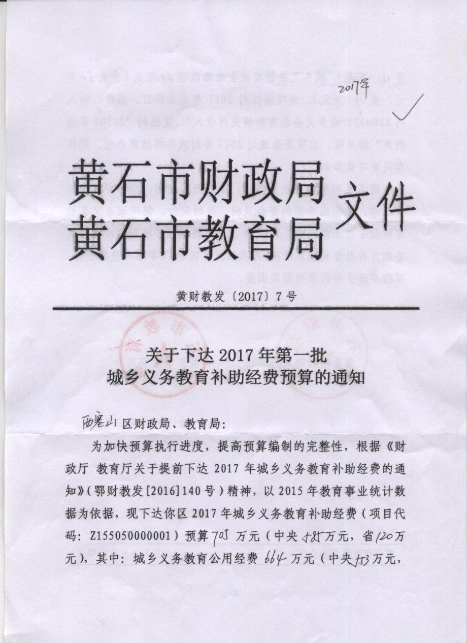 2017年农村义务教育经费保障机制改革经费公开一览表