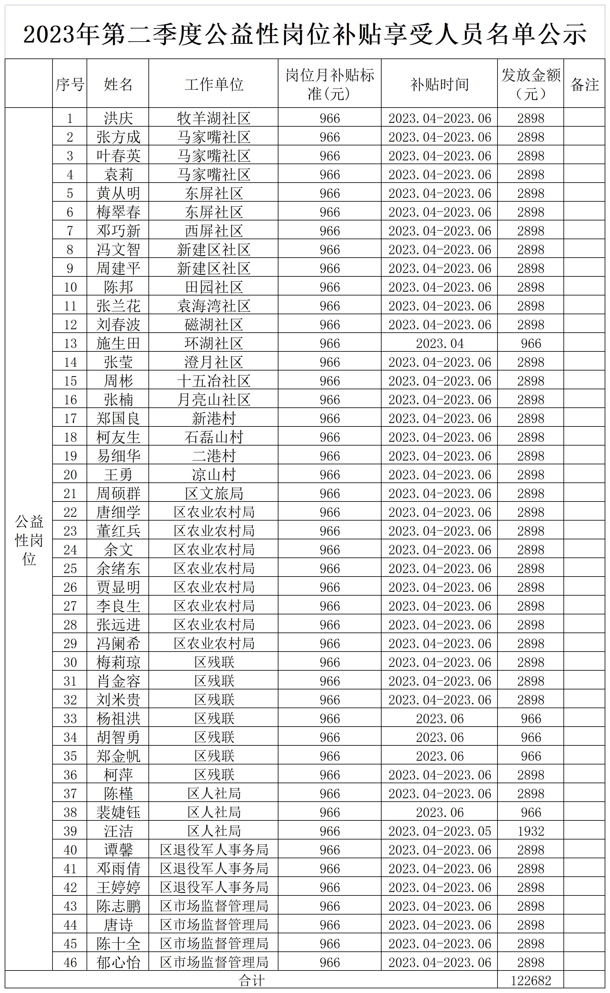 2023年第二季度公益性岗位补贴享受人员名单公示
