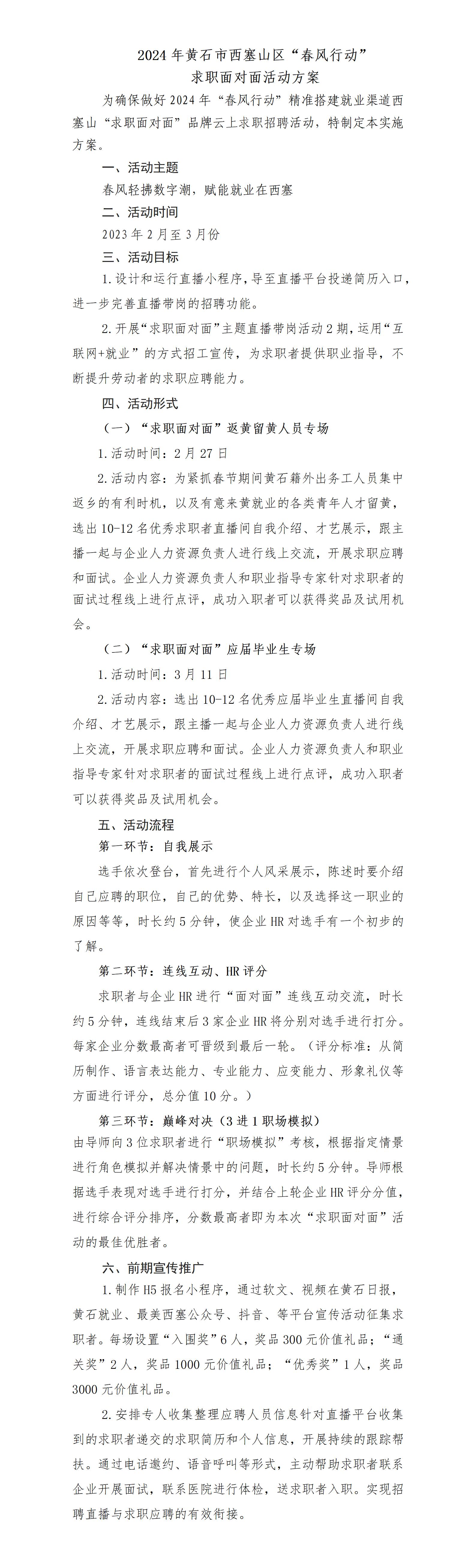 2024年黄石市西塞山区“春风行动”求职面对面活动方案