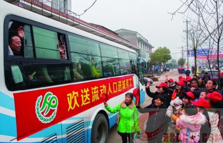 昨日,西塞山区河口镇闸口社区的居民向即将外出务工的亲人挥手告别。当日,为给外出务工人员提供便利,西塞山区卫计局免费为外出务工人员体检并用专车将他们送往黄石火车站。