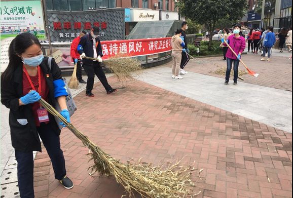 石料山社区动员党员、下沉干部、志愿者积极参与爱国卫生运动,推动大家养成文明习惯,共同做好疫情防护工作。