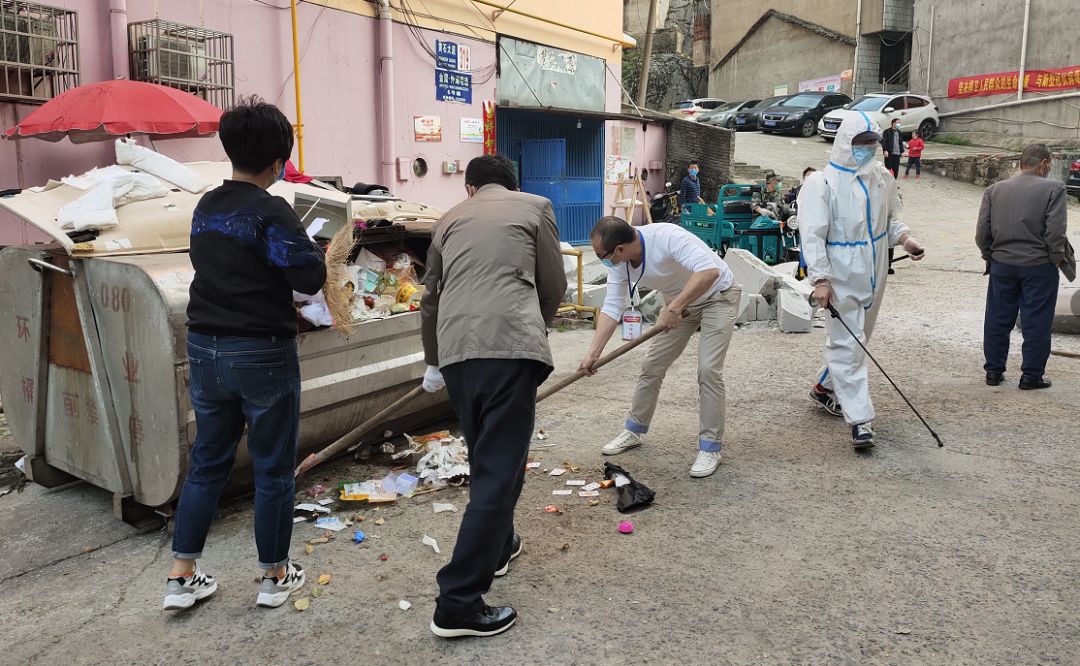 磁湖社区189名下沉党员、23名挂点干部、35名志愿者在各自包保区域开展爱国卫生运动。