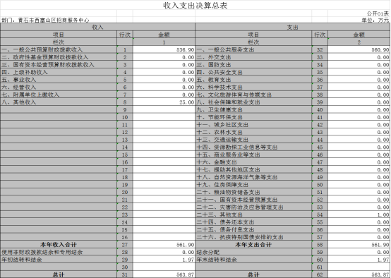 一、收入支出决算总表