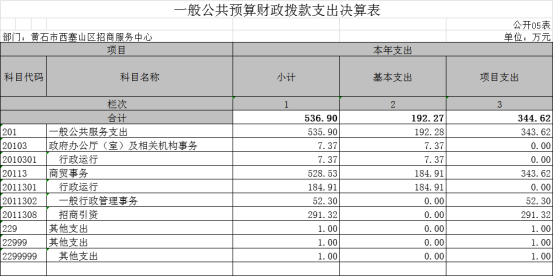 第二部分 西塞山区招商中心2023年度部门决算表